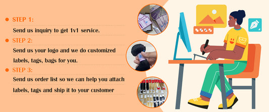 2. We can help you attach your logo labels and do dropshipping for your customers. Without the tedhair logo. Here is the process.