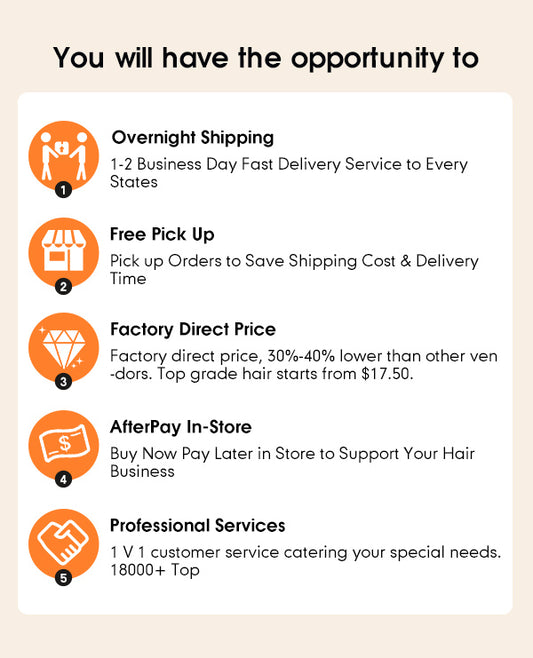 Here we are! Your best wholesale hair vendor in Los Angeles, CA. All kinds of wholesale hair extensions offered, No MOQ limited. 1V1 business service, the preferred vendor of 18000+ TOP hairstylists!