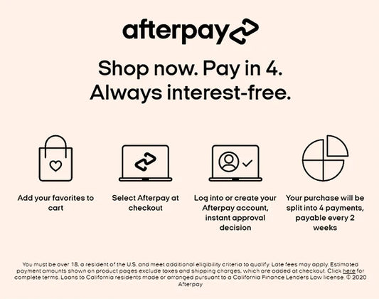 We support three kinds of payment, afterpay, paypal, and credit card!
